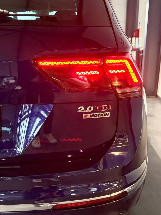 Ce VOLKSWAGEN TIGUAN 2.0 BI-TDI 240 équipé de la boîte automatique DSG, combine motorisation hautes performances, transmission intégrale 4Motion et finition sportive R-Line. Un SUC premium au caractère affirmé, idéal pour allier confort, dynamisme et polyvalence. Il est équipé de l’attelage amovible électriquement, du driving mode select, du régulateur adaptatifs ACC et des sièges chauffants.